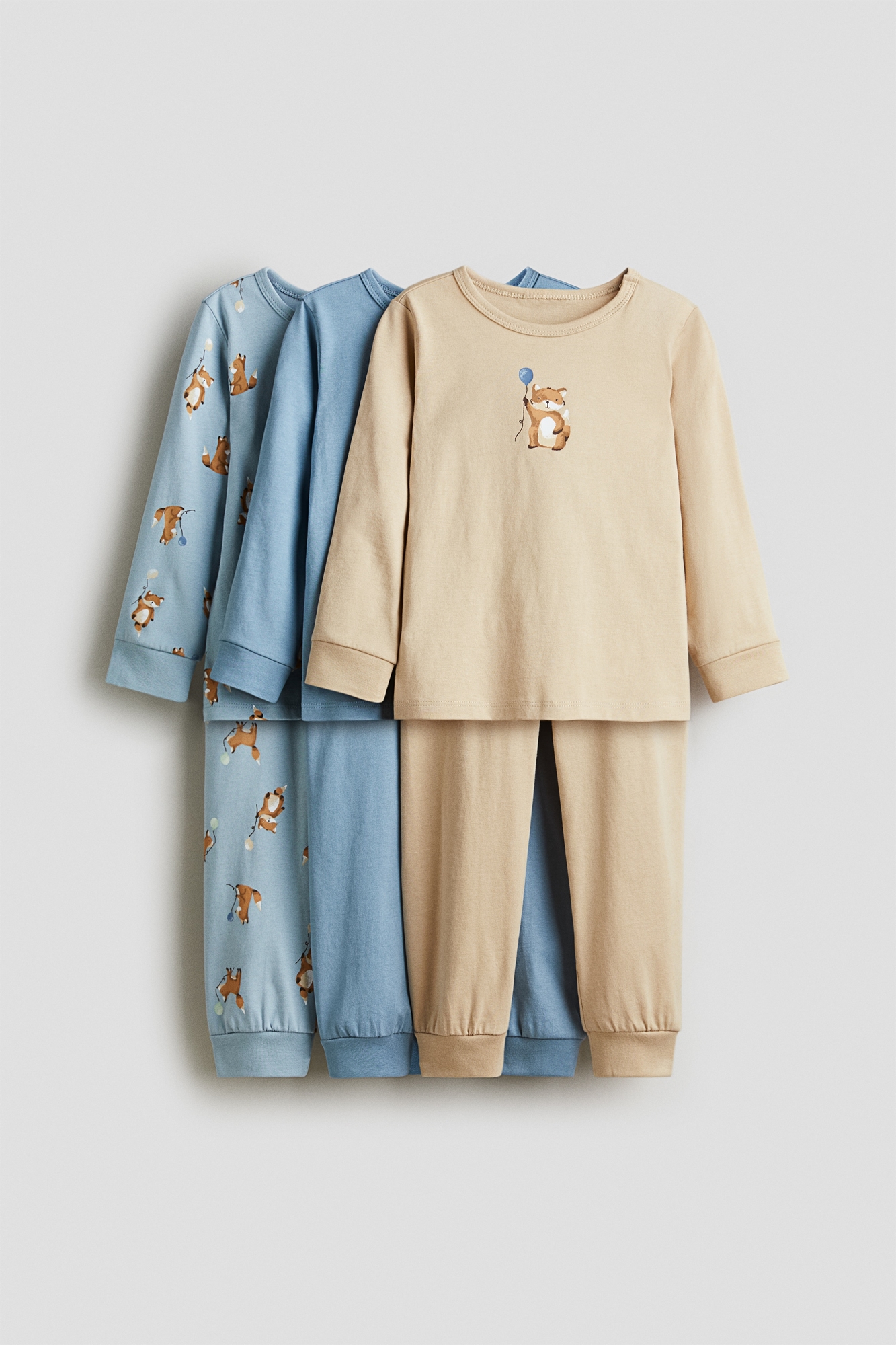 Пижамы из мягкого хлопкового трикотажа. Рубашки с длинными рукавами, ребристыми манжетами и пуговицей на плече. Брюки с эластичным поясом и ребристыми манжетами на ногах.