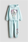 Комплект из толстовки и джоггеров из принтованной толстовки с мягким начесом внутри. Толстовка с капюшоном на подкладке, опущенными плечами, длинными рукавами и окантовкой на манжетах и подоле. Джоггеры с эластичным утягивающим поясом.