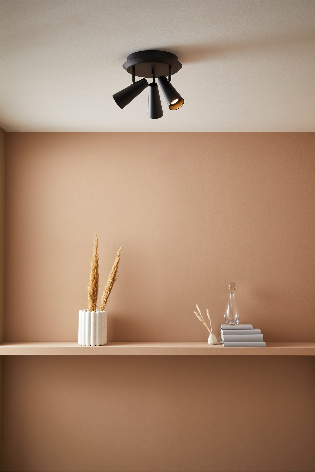 Черный потолочный светильник с тремя регулируемыми абажурами - идеальное решение для кухни. Для светильника требуются три лампочки с цоколем GU10 мощностью не более 7 Вт, в комплект не входят. Размер лампы: 36 см в ширину, 36 см в глубину, 20 см в высоту.
