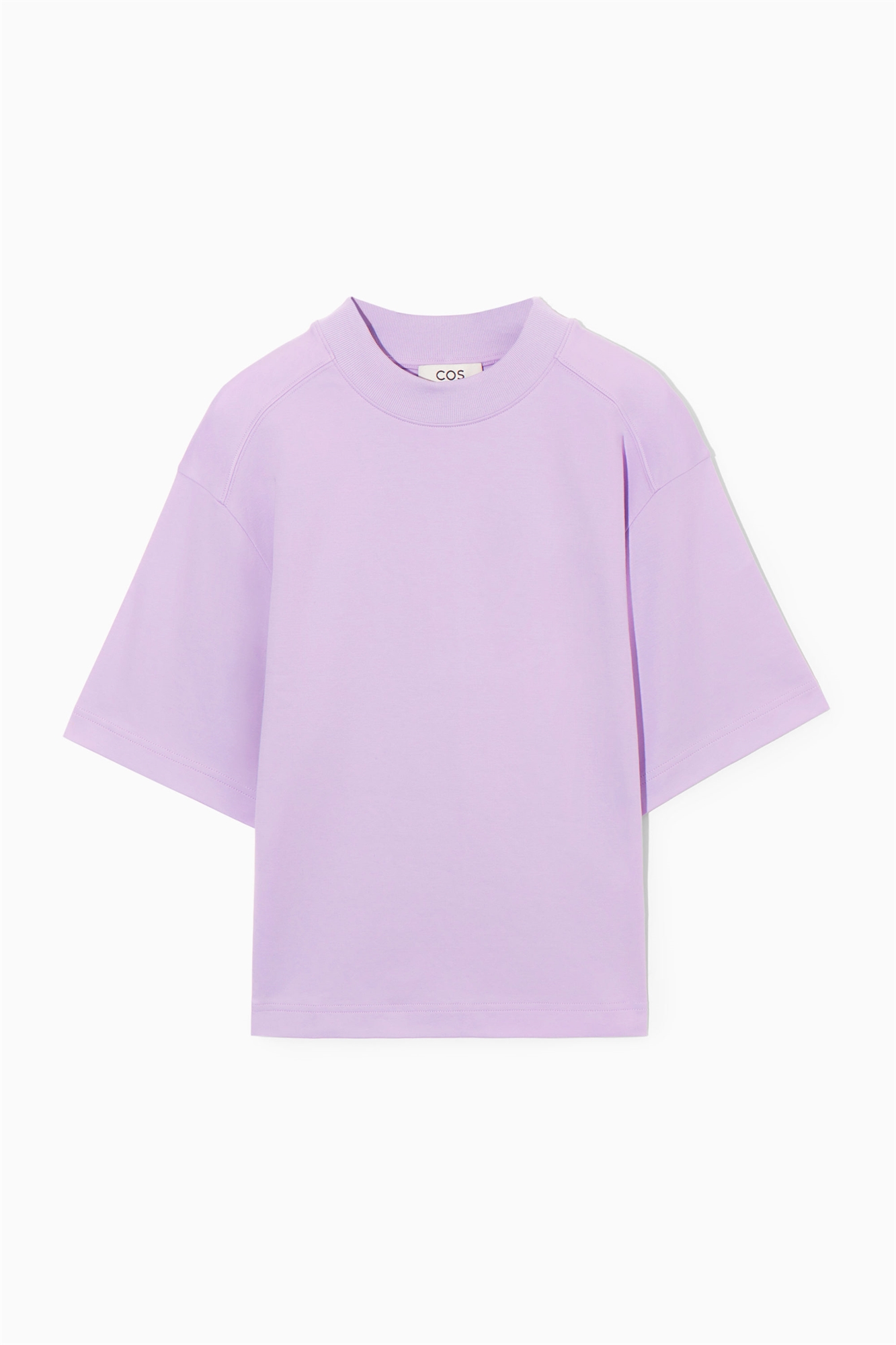 Эта футболка сиреневого цвета - элегантная версия классики. Слегка приталенный фасон с ребристым воротником-стойкой, спущенными плечами и широкими рукавами обеспечивает непринужденный силуэт. Она изготовлена из чистого хлопка, который сохраняет свою мягкую текстуру и форму - как раз подходящий материал для любимой вещи, которую часто носят. - Приталенный силуэт - Короткие рукава, тонкие швы - Центральный задний шов для придания формы 100% хлопок/машинная стирка в теплом виде Длина по спинке в размере S = 56,1 см