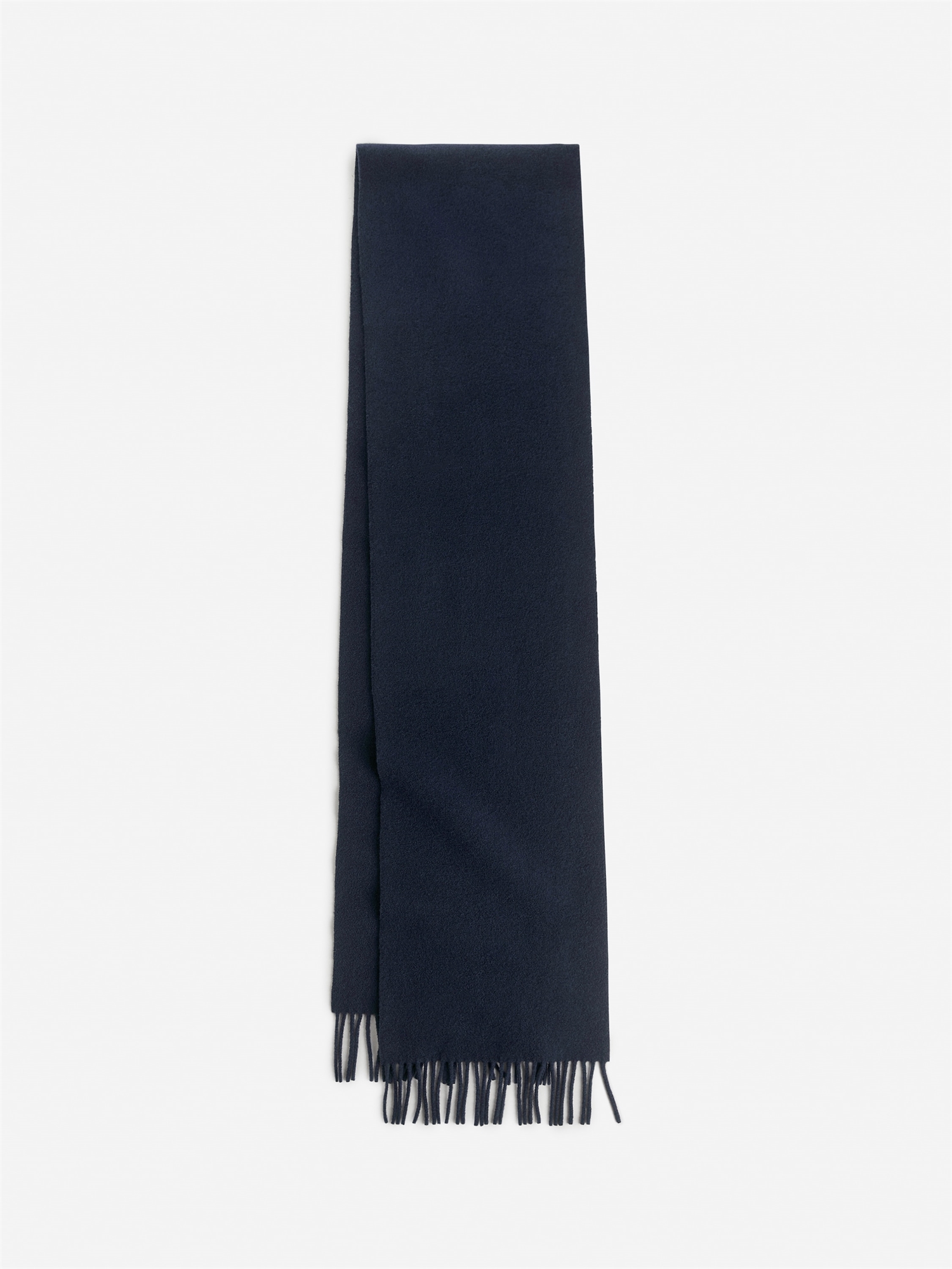 Шарф плотного плетения из шерсти. Украшен бахромой по коротким краям. Размеры 27 см x 250 см.