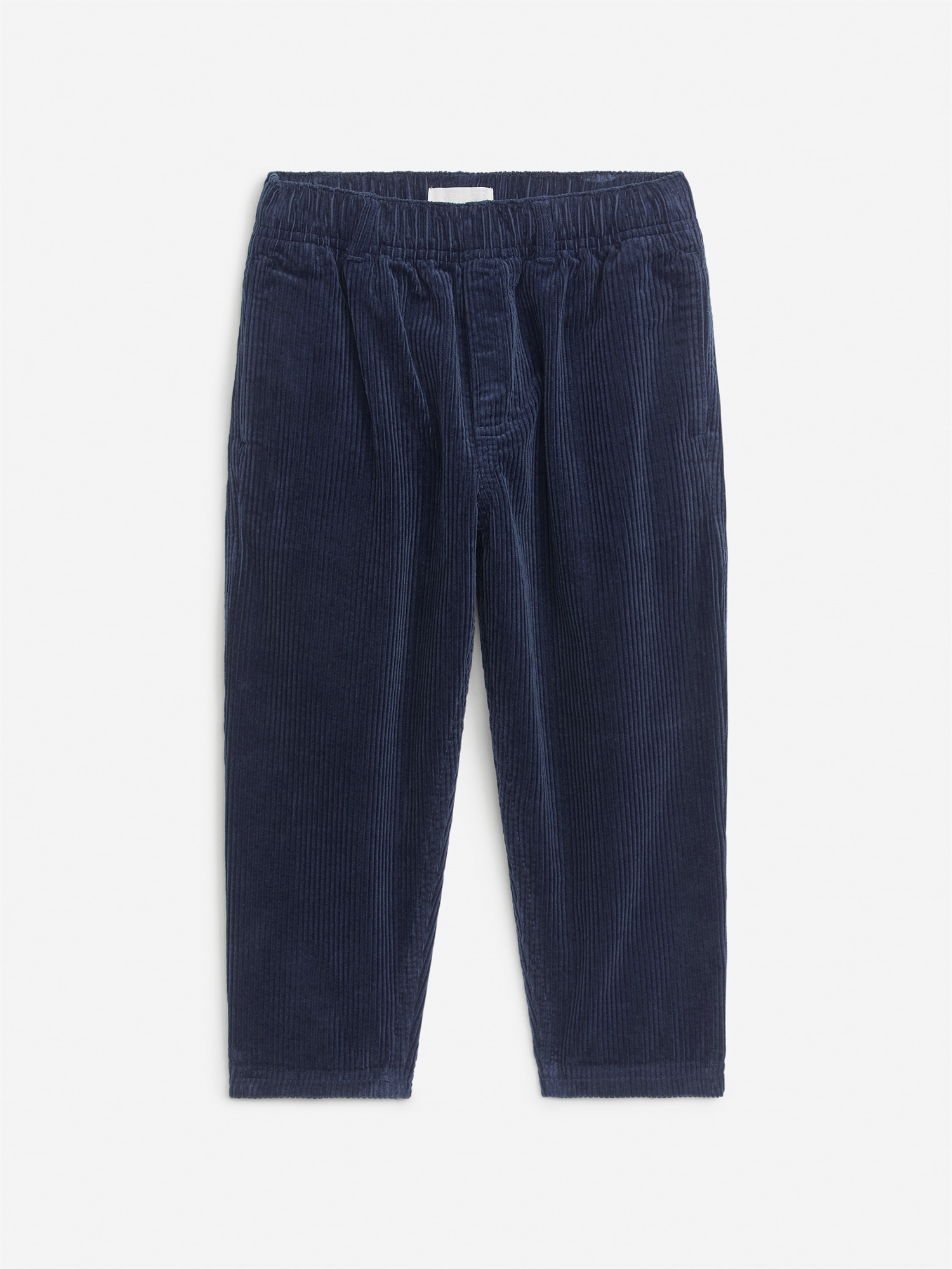 Брюки-дудочки из детской вельветовой ткани. Брюки имеют непринужденную посадку и дополнены карманами в боковых швах, втачными задними карманами и регулируемым поясом.