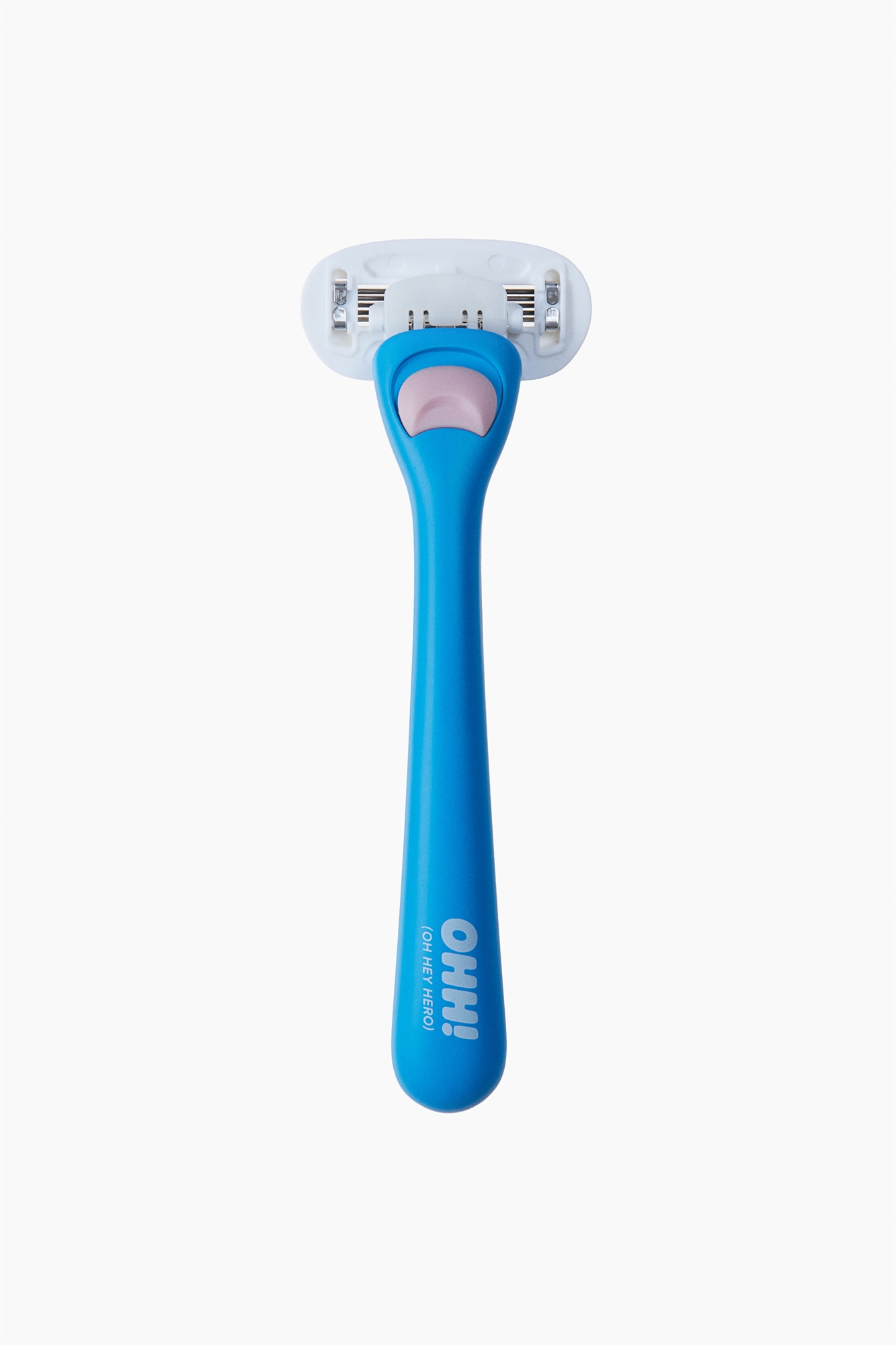 Я - волосы, чтобы спасти день! Бритвенная головка с пятью лезвиями, металлической ручкой и резиновой рукояткой. Устойчивая к скольжению ручка помогает добиться чистого и точного бритья, а удобная веганская полоска мягко скользит по коже. Всегда с любовью, Смотритель