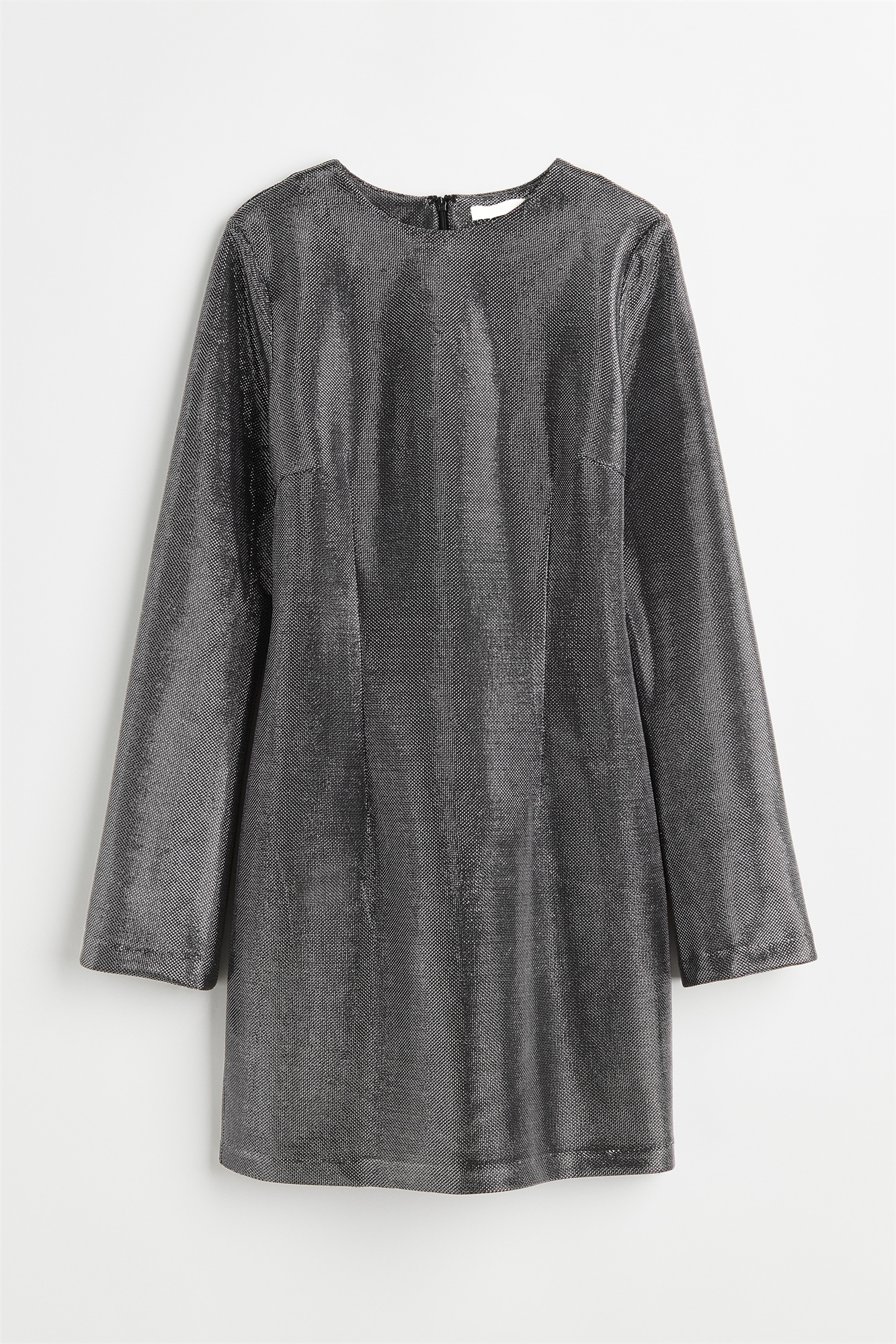 Короткое приталенное платье из хлопкового микса с круглым вырезом. Скрытая застежка-молния и застежка-крючок сзади. Фигурные вытачки спереди и сзади, длинные рукава и прямой подол.