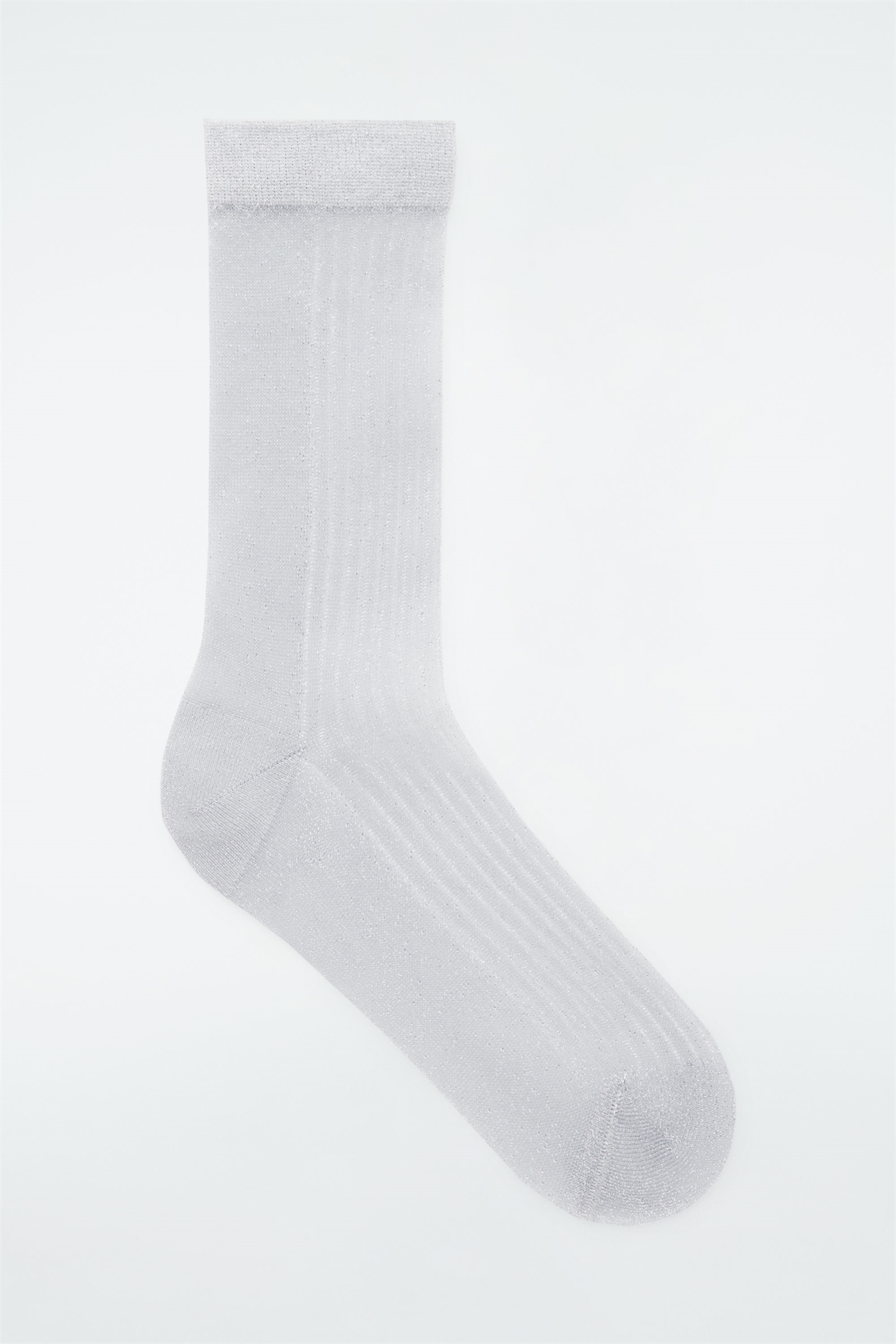Эти блестящие серебристые ребристые носки с металлизированными волокнами имеют тонкую прозрачную отделку, контрастные пятки и ребристые манжеты. Воспользуйтесь трендом "носки и сандалии", надев их с каблуками на платформе. Материал: 74% полиамид (нейлон), 26% металлизированное волокно. Без учета отделки / Машинная стирка
