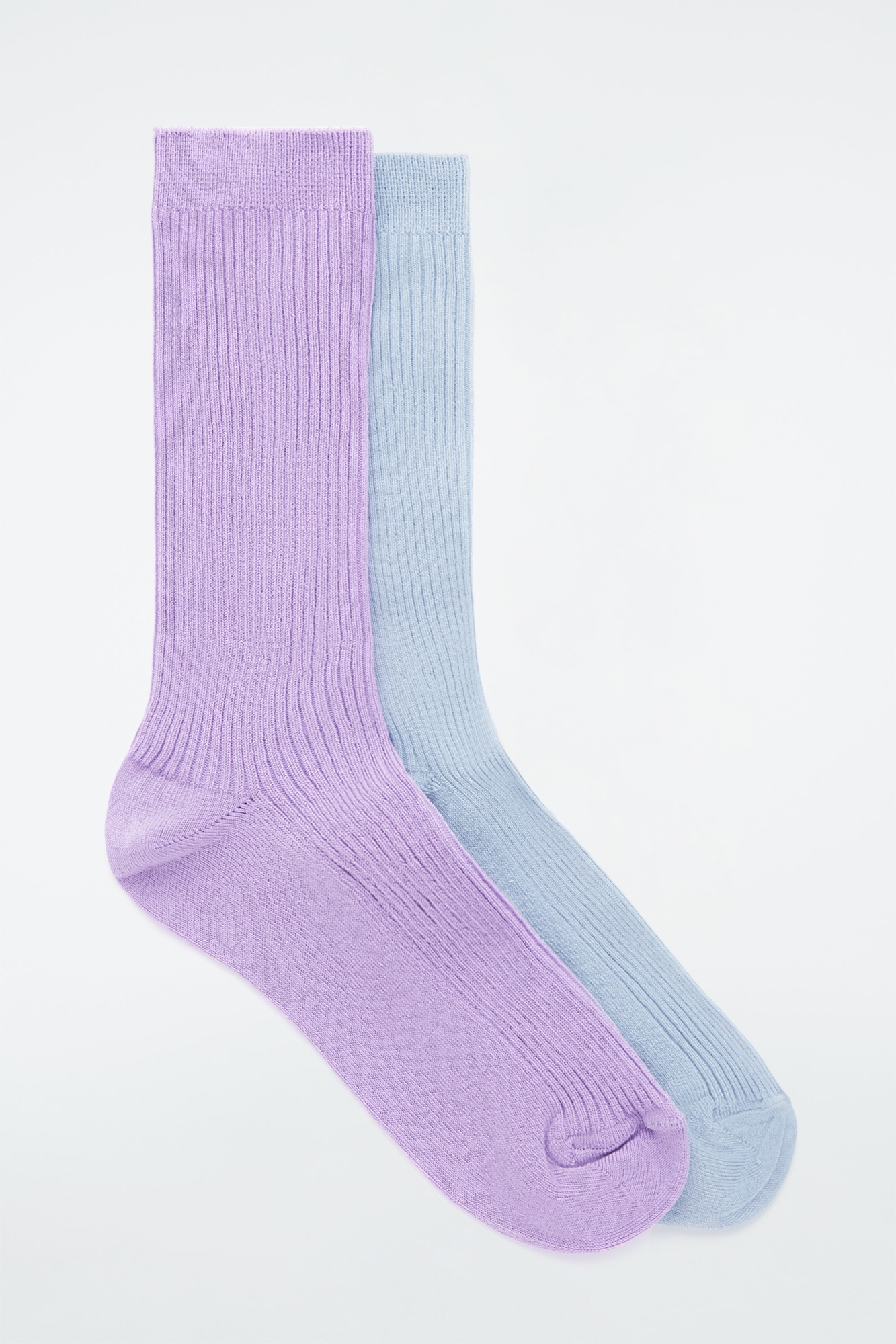 Эти две пары ребристых носков из смеси мерсеризованного хлопка светло-голубого и нежно-сиреневого оттенков добавят ярких красок в любой наряд. Ребристые манжеты Верхний материал: 74% хлопка, 24% полиамида, 2% эластана. Детали не учитываются/машинная стирка