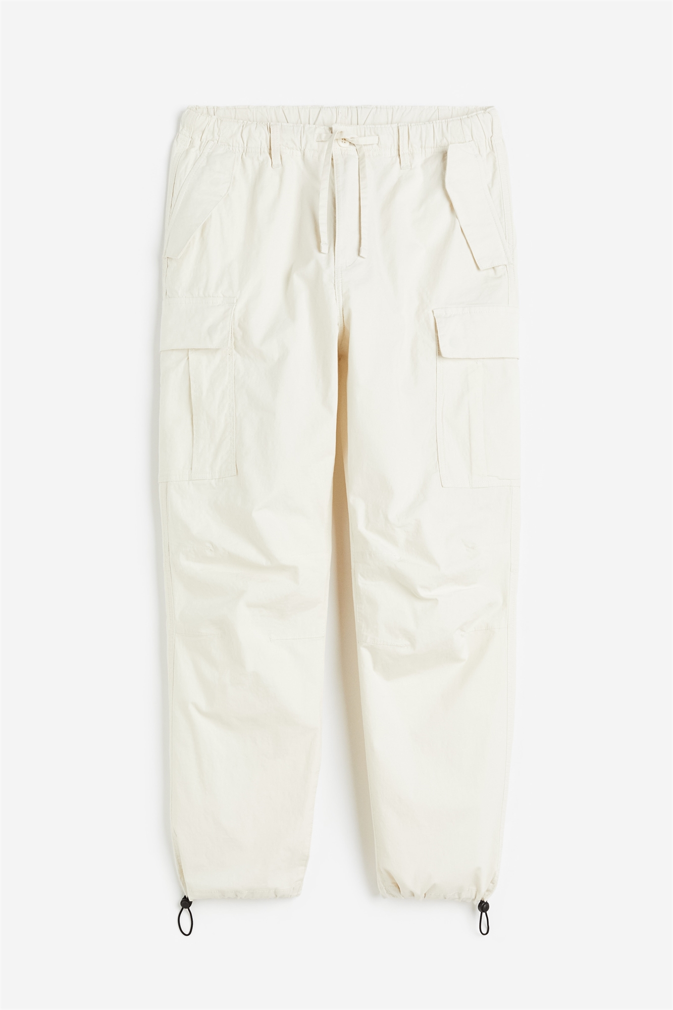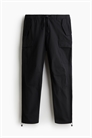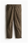 Брюки-карго Regular-Fit из износостойкой ткани рипстоп. Эластичная резинка и утягивающий шнурок на талии, ширинка на молнии и пуговице. Боковые, задние и ножные карманы с клапаном и потайными кнопками, а также эластичный шнурок с ограничителем на подоле.