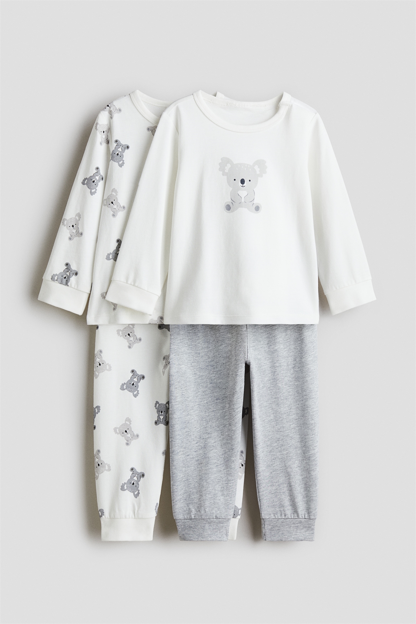 Пижамы из мягкого хлопкового джерси с набивным рисунком. Верхняя часть с длинными рукавами, застежкой на кнопки на одном плече и ребристыми манжетами. Нижние штанины с эластичной вставкой на талии и ребристыми краями.
