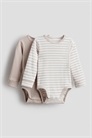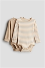 Боди из мягкого, ребристого хлопкового трикотажа со скрытой застежкой на одном плече и скрытыми застежками в промежности. Длинные рукава с удлиненными манжетами, которые можно подворачивать по мере роста ребенка.