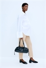 Брюки из тканого материала из смеси хлопка. Высокая талия с утяжкой сзади, фальшивая ширинка, диагональные боковые карманы, фальшивые накладные задние карманы и зауженные ноги со складками. Широкая ребристая панель на талии для лучшей посадки на животе.