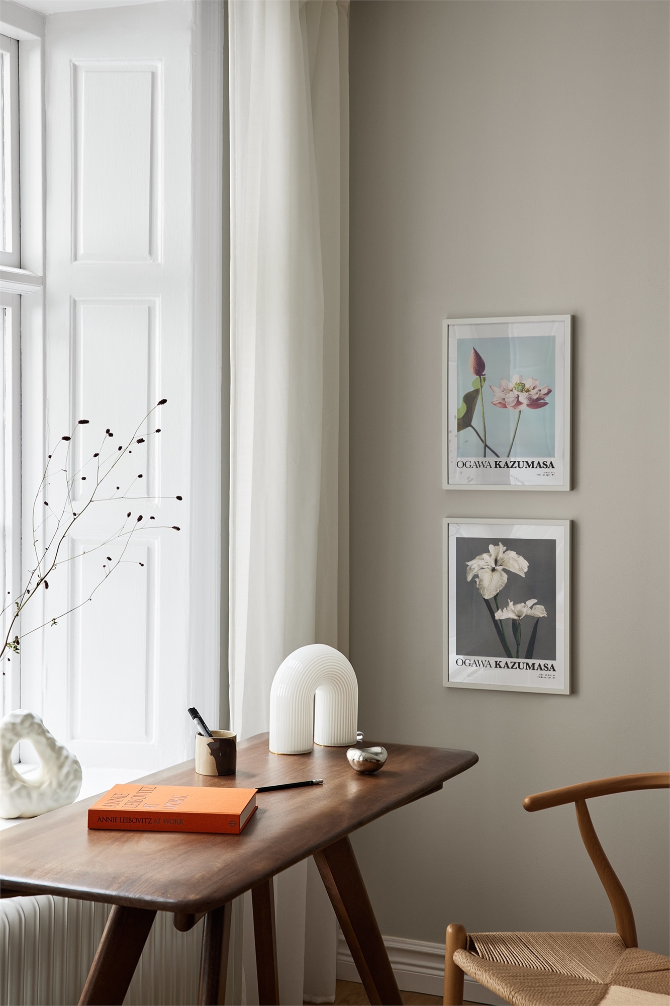 Ирис Кемпфери, раскрашенная вручную коллотипия из книги "Некоторые японские цветы" японского художника Огавы Кадзумасы. Белые блики в обрамлении серого фона.