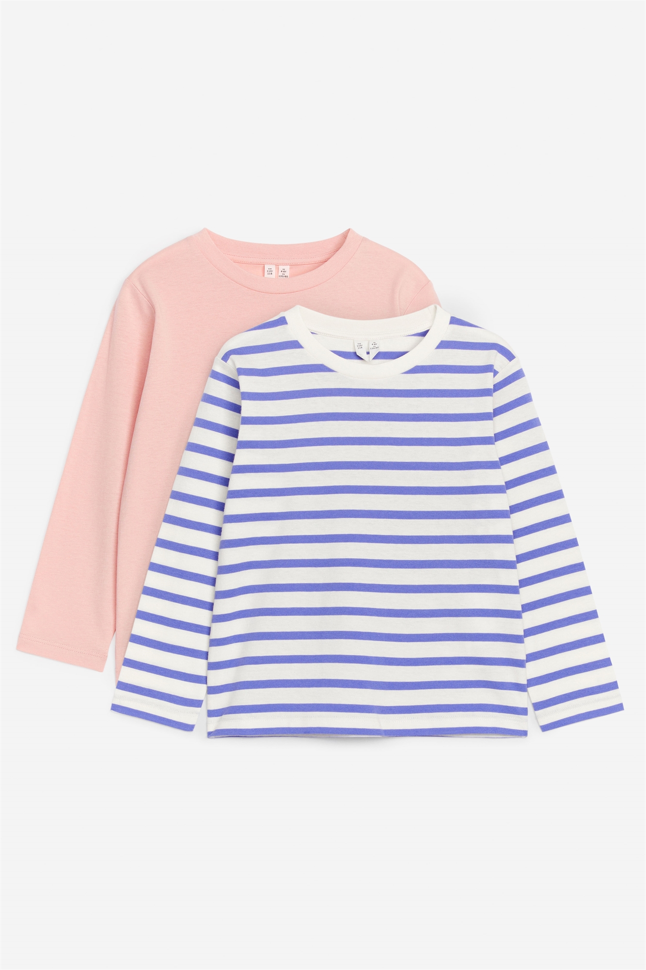 Футболка с длинными рукавами из мягкого хлопкового джерси. Покрой обычный, продается в комплекте из двух штук.