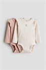 Боди с длинными рукавами из мягкого хлопкового джерси со скрытой застежкой на одном плече и скрытыми застежками в промежности.