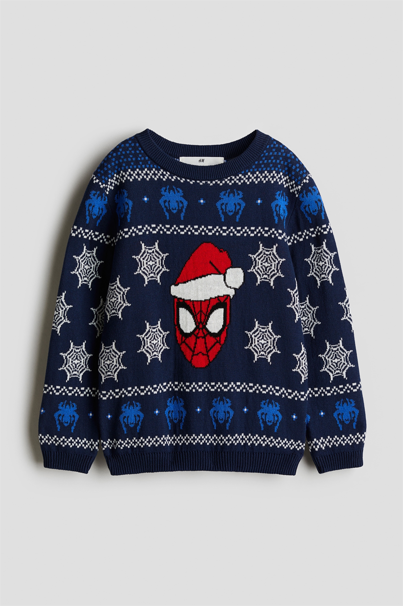 Джемпер из мягкого хлопка жаккардовой вязки с круглым вырезом, отделанным ребрами, слегка спущенными плечами и длинными рукавами. Ребристые манжеты и подол.