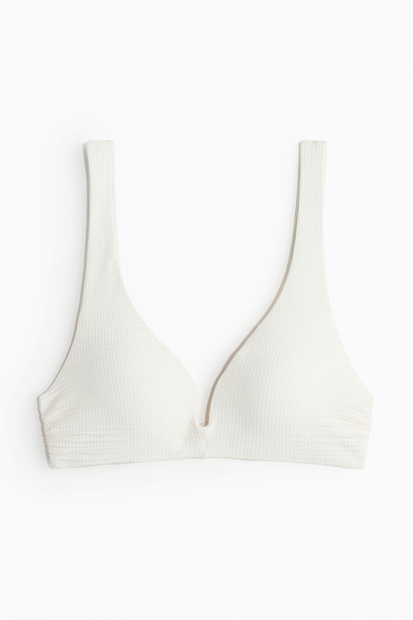 Бикини-топ на подкладке с мягкими чашечками для увеличения бюста и декольте. Широкие регулируемые бретели и металлическая застежка сзади.