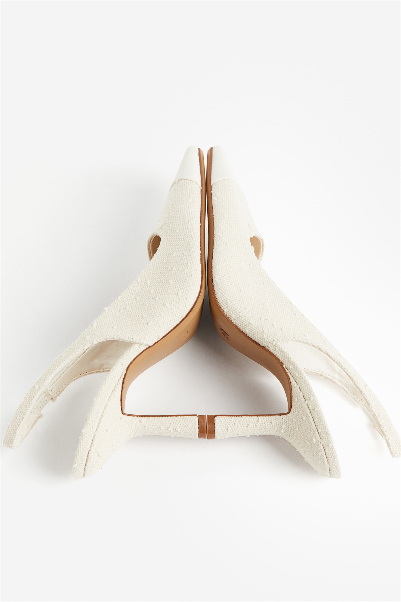 Текстурированные туфли-лодочки с квадратным носком, частично закрытым каблуком-запятой и эластичным ремешком на щиколотке. Атласная подкладка. Каблук 8 см.