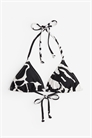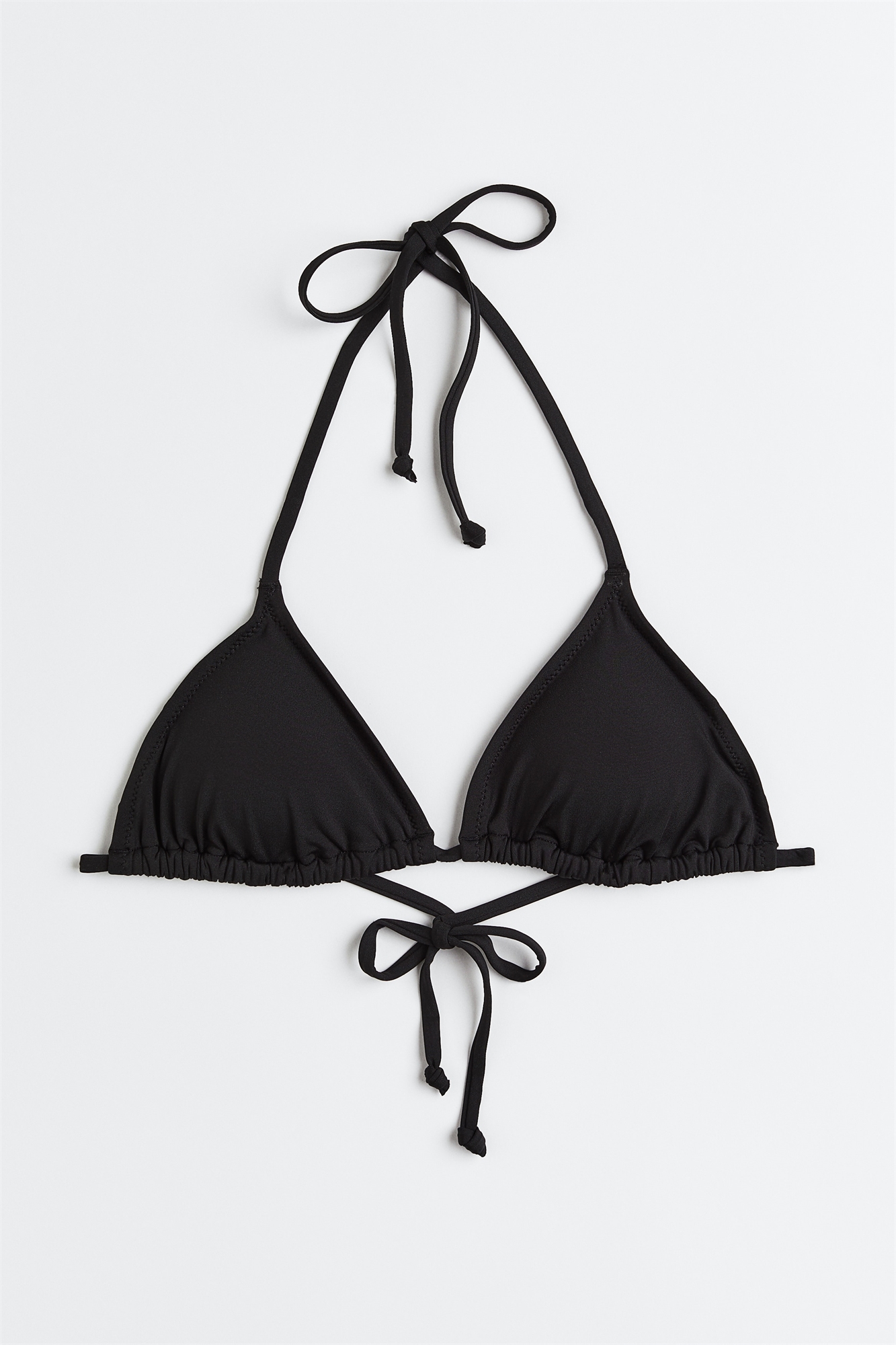 Бикини-треугольник без подкладки с узкими бретелями и мягкими чашечками со съемными вкладышами, придающими форму бюсту и обеспечивающими хорошую поддержку. Завязки сзади и на шее.