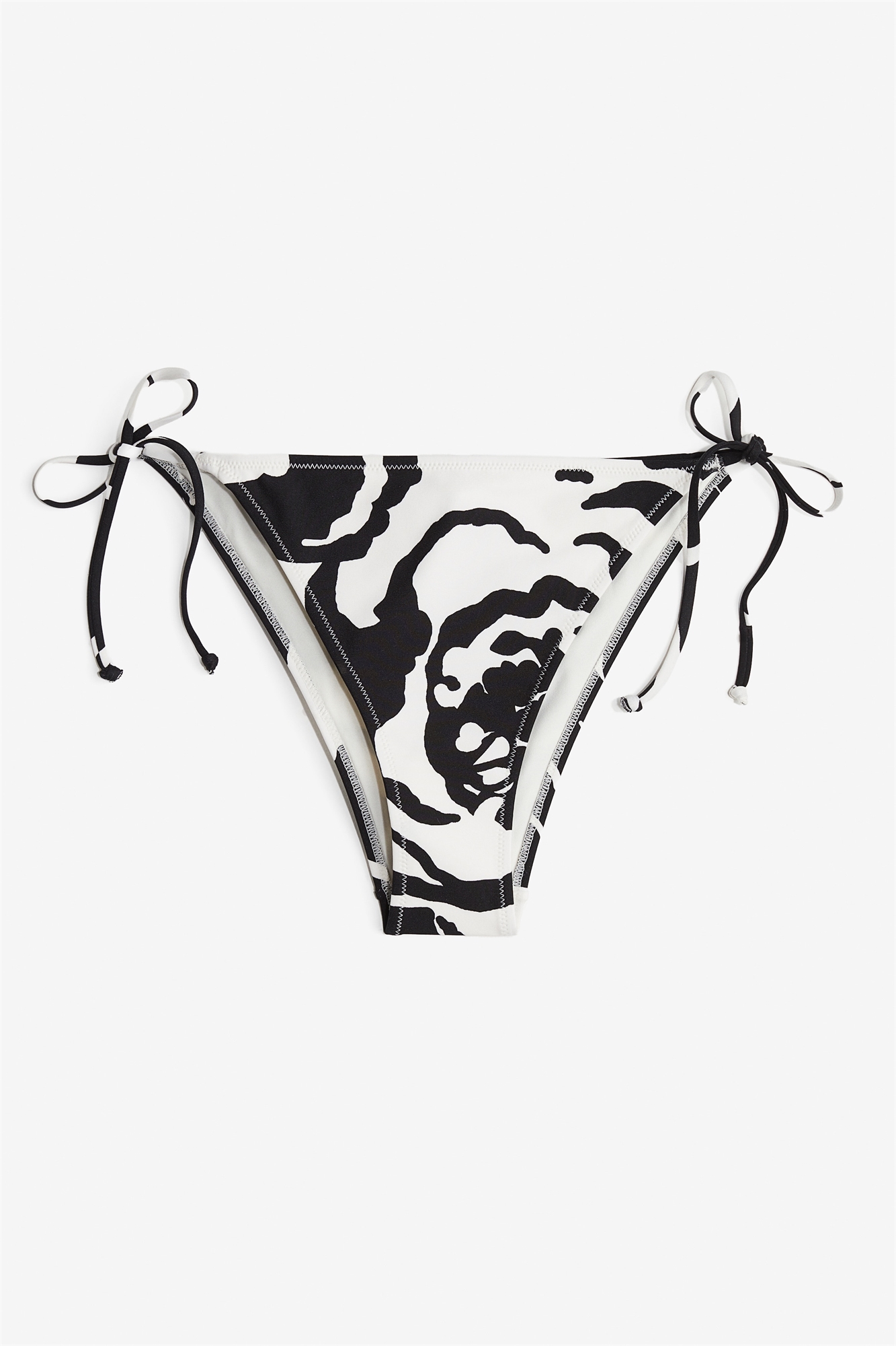 Полностью закрытые трусы-бикини со средней талией, завязками по бокам и вырезом сзади.