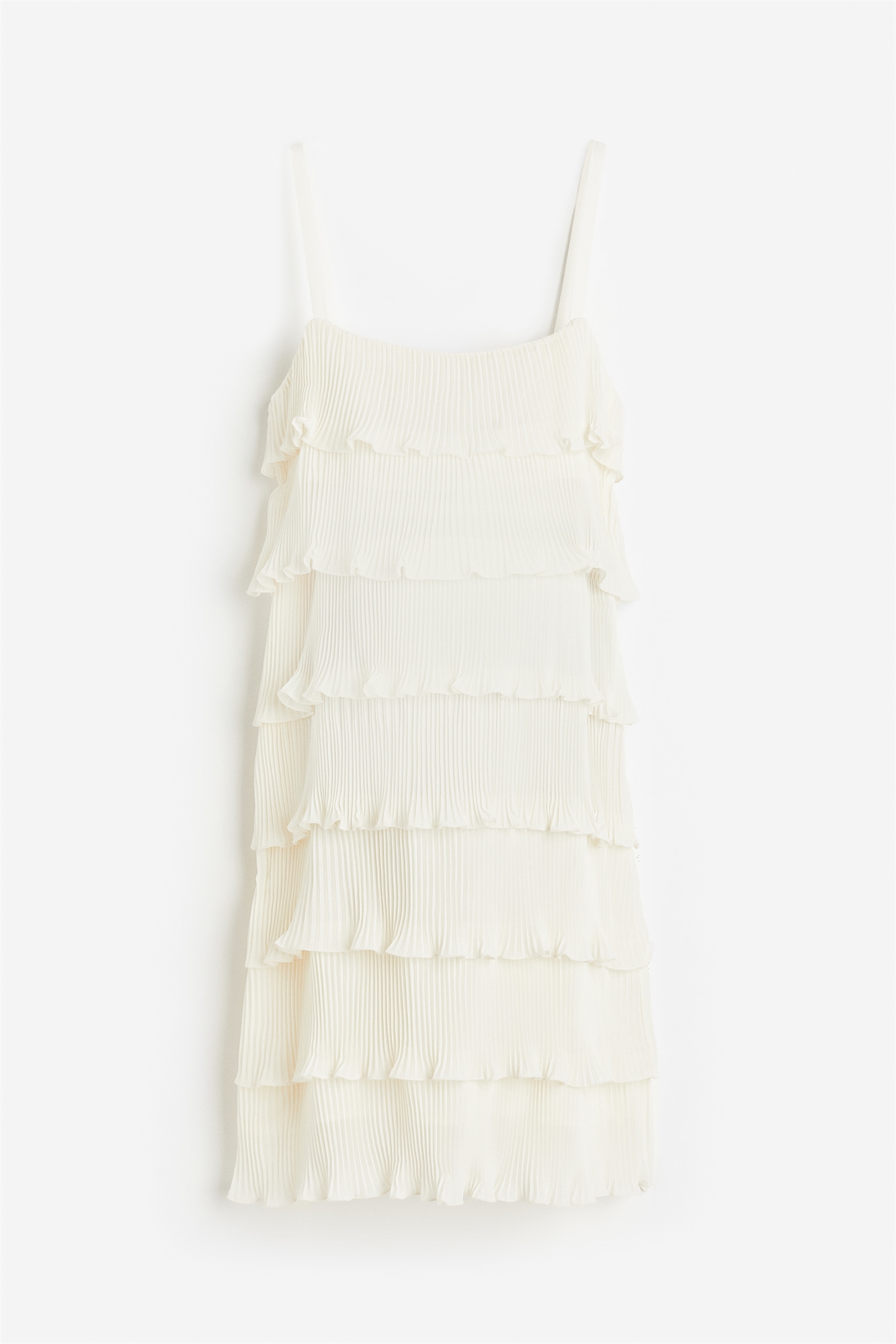 Короткое платье для кормящих из плиссированного шифона с ярусами, оверлочными краями и практичной функцией ухода. Узкие бретели и квадратный вырез. Конструкция с двойными слоями помогает предотвратить потерю тепла, чтобы вы могли спокойно кормить ребенка грудью.