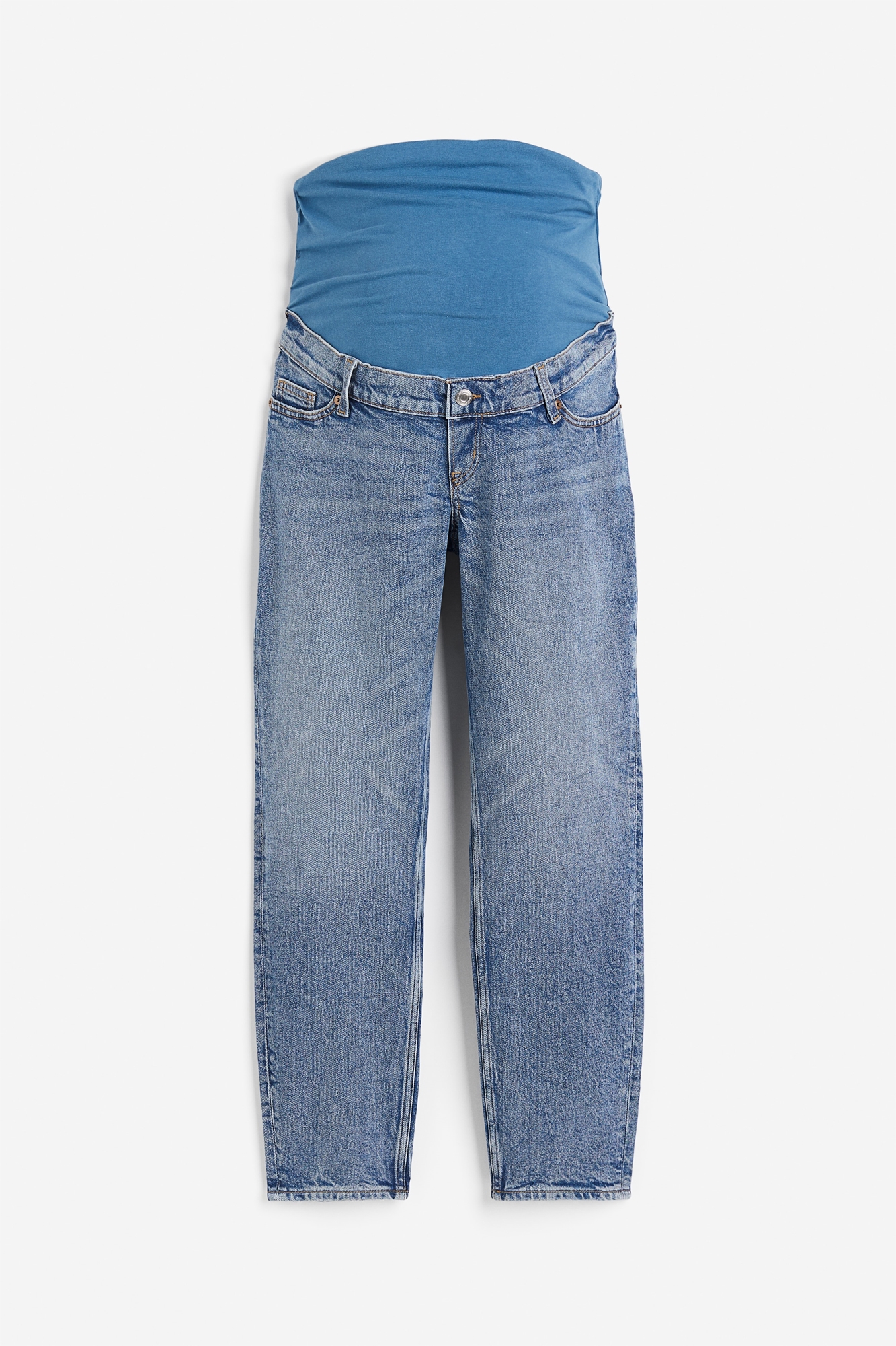 Джинсы длиной до щиколотки из моющегося, слегка тянущегося денима с фальшивой ширинкой. Фальшивые передние карманы, настоящие задние карманы и узкие, зауженные ноги. Широкая панель из джерси на талии для лучшей посадки на животе.