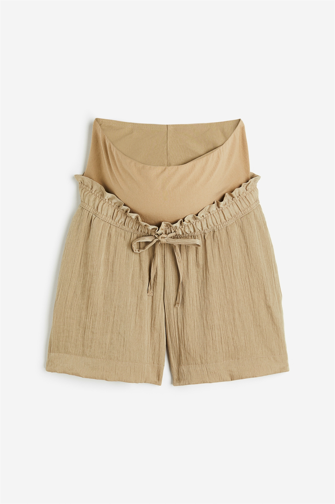 Шорты из кринкл-ткани с эластичным поясом, небольшим воланом в верхней части, карманами в боковых швах и широкой штаниной. Широкий притачной пояс из джерси обеспечивает идеальную посадку в области живота.