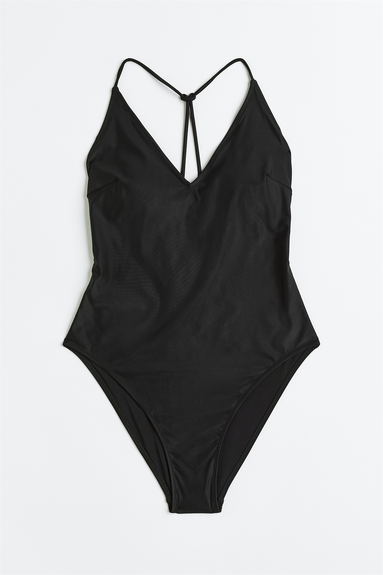 Полностью на подкладке, купальник с V-образным вырезом и узкими бретелями, которые завязываются узлом сзади. Чашечки со съемными вставками, придающими форму бюсту и обеспечивающими хорошую поддержку. Ноги с высоким вырезом и средним охватом сзади.
