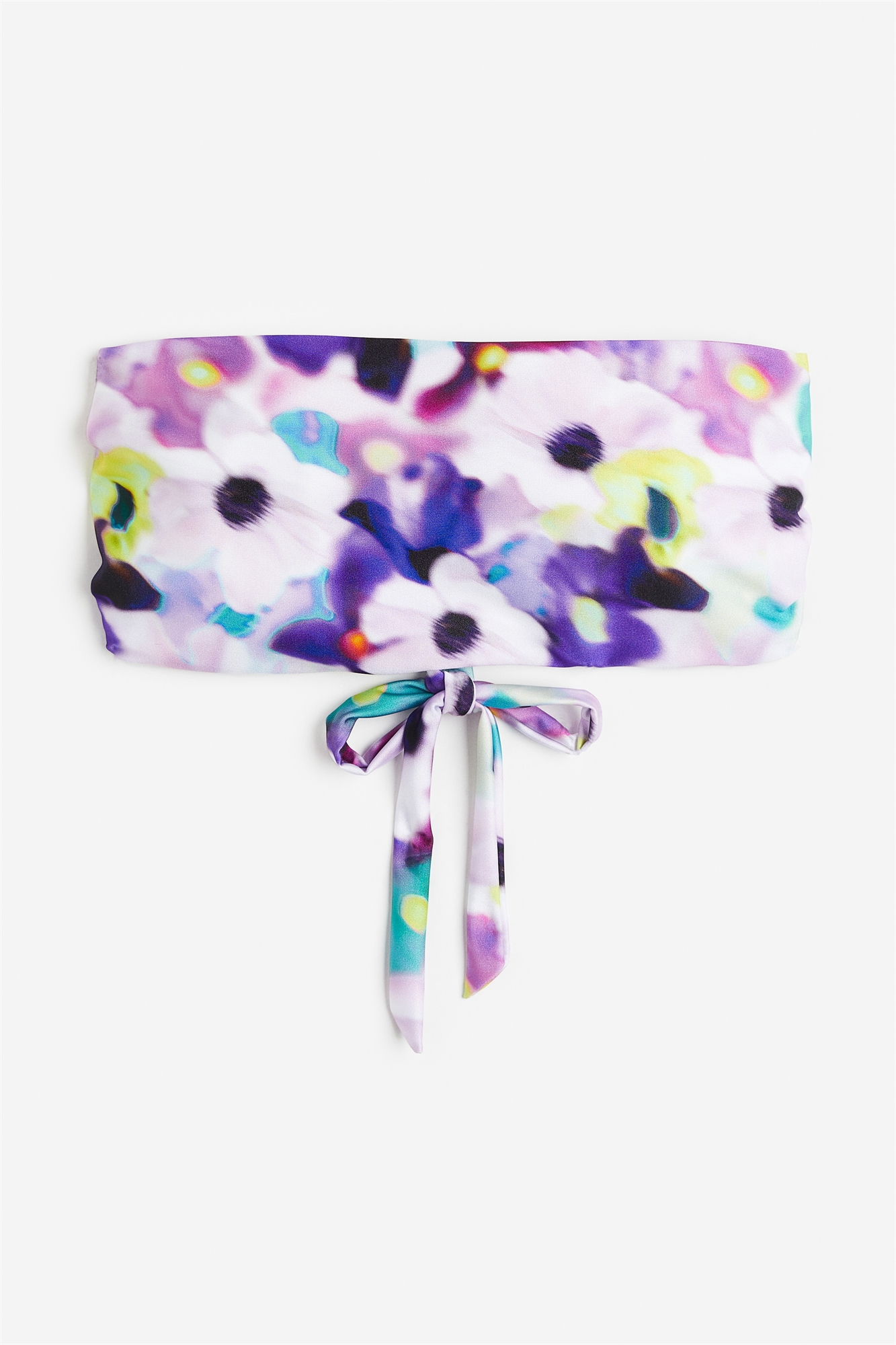 Бикини-бандо с мягкими чашечками. Чашечки со съемными вставками, которые придают груди форму и хорошо поддерживают ее. Шнуровка сзади и широкие бретели, завязывающиеся внизу.