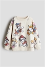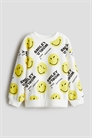 Топ оверсайз в виде толстовки с набивным рисунком из хлопковой смеси с мягким начесом внутри. Круглый вырез в рубчик, спущенные плечи, длинные рукава, манжеты и подол в рубчик.
