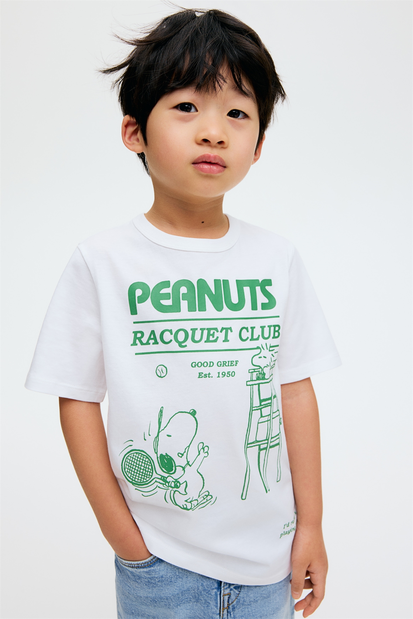 Классическая футболка из хлопкового джерси с принтом и узкой ребристой окантовкой горловины.