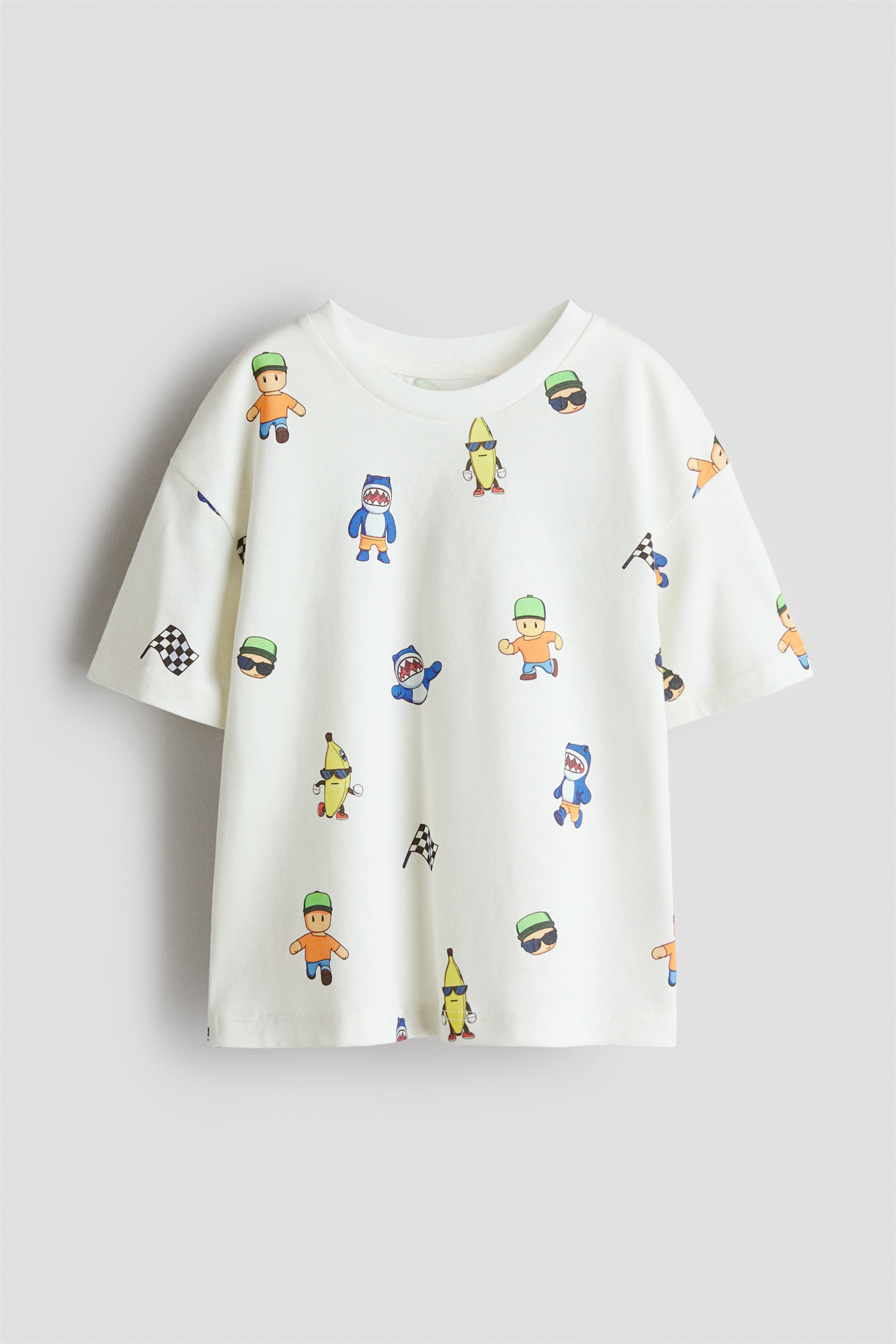 Футболка оверсайз из мягкого хлопкового джерси с принтом. Ребристая отделка горловины и спущенные плечи.