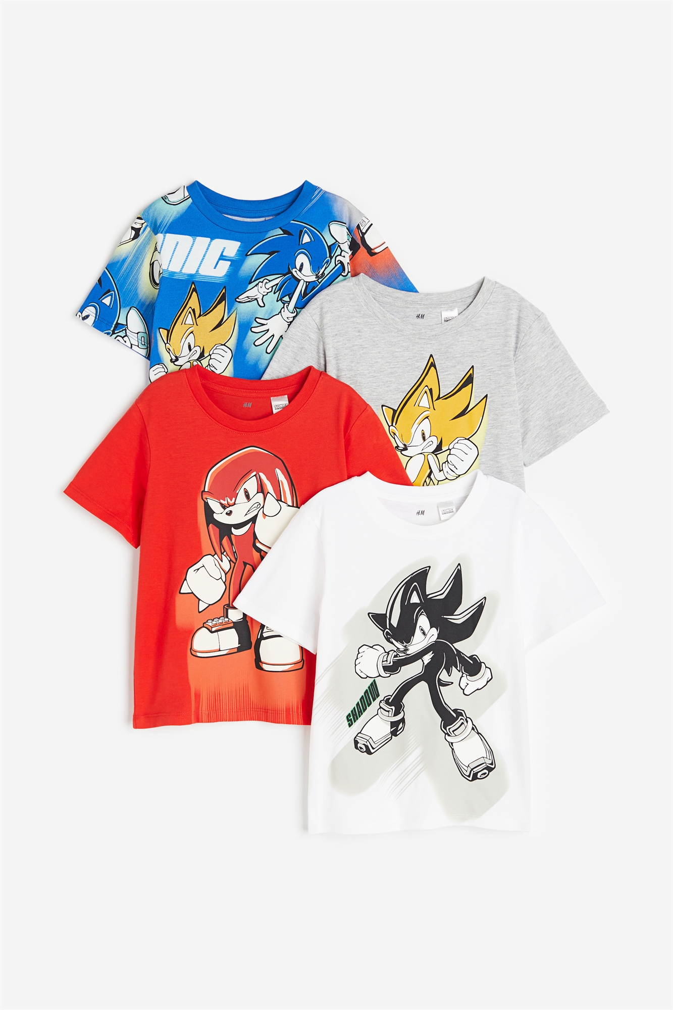 Футболки из мягкого хлопкового джерси с принтом спереди и окантовкой горловины в рубчик.