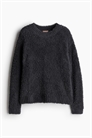Свободный топ для отдыха из мягкого пушистого трикотажа с отделкой в рубчик по горловине, слегка спущенными плечами и длинными рукавами. Манжеты и подол отделаны ребрами жесткости.