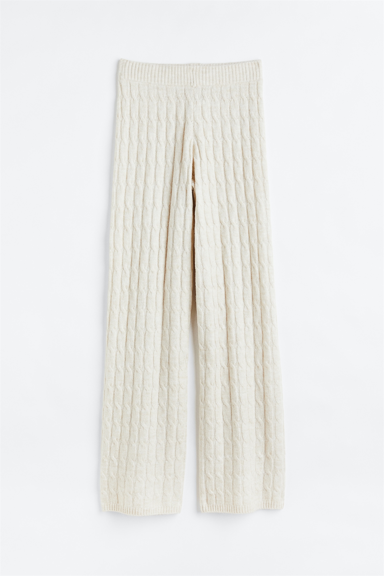 Брюки из мягкого трикотажа в рубчик. Регулярная талия с ребристым эластичным поясом и широкие прямые ноги с ребристыми каймами.