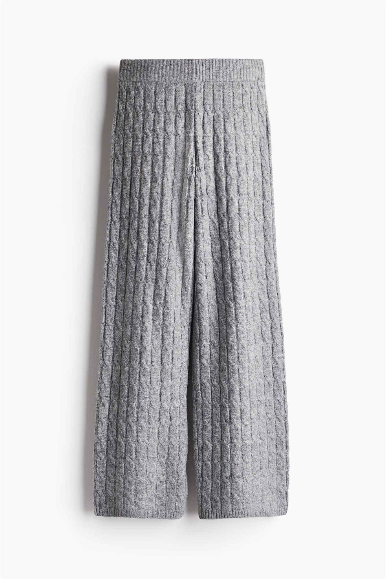 Брюки из мягкого трикотажа в рубчик. Регулярная талия с ребристым эластичным поясом и широкие прямые ноги с ребристыми каймами.