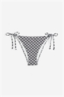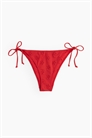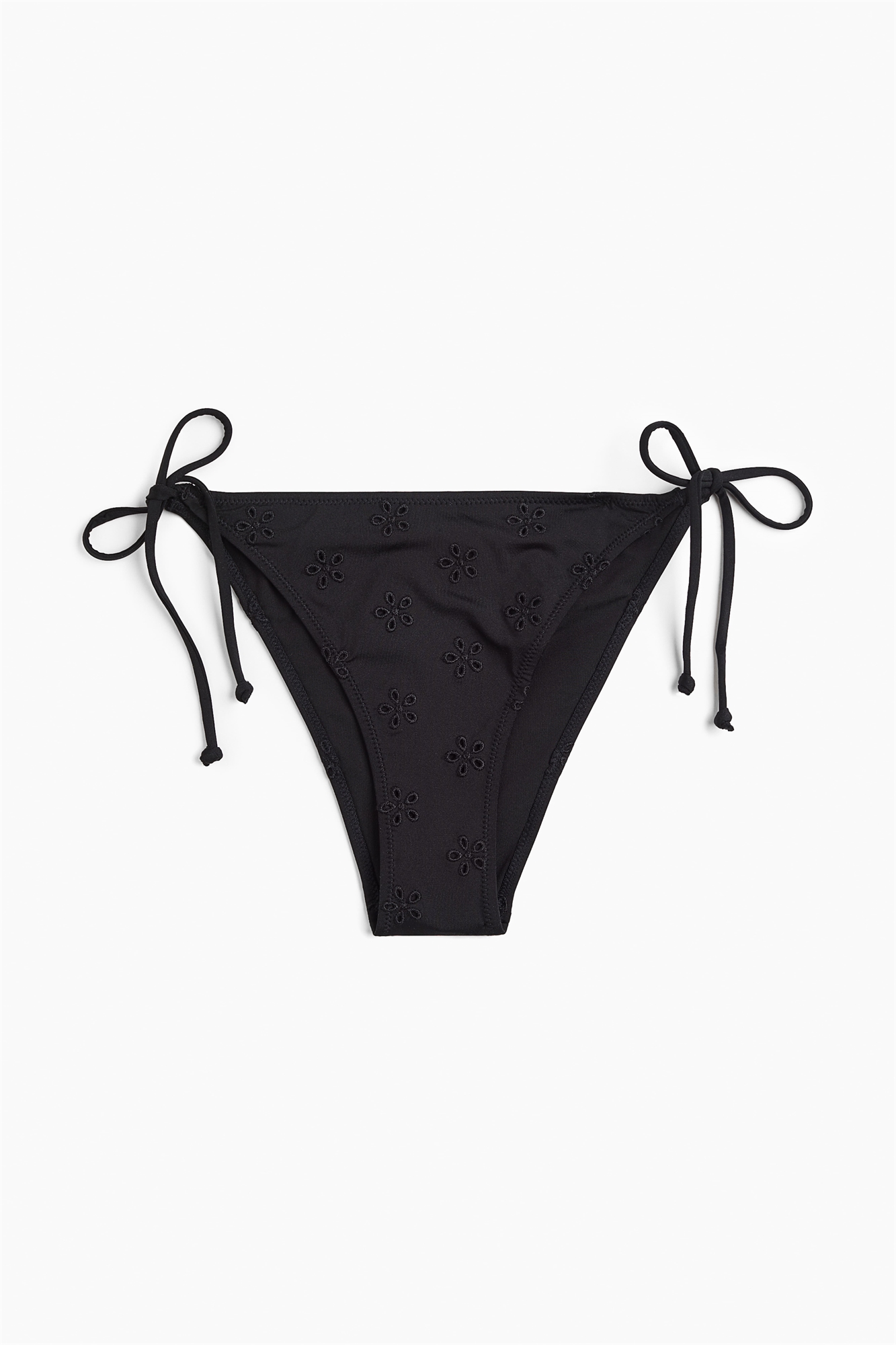 Трусики-бикини на подкладке со средней талией, завязками по бокам и вырезом сзади.