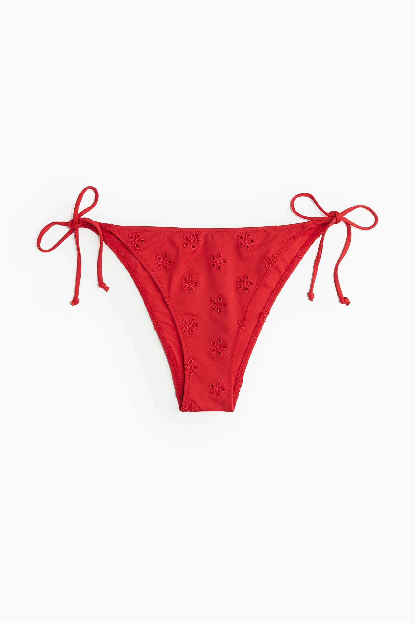 Трусики-бикини на подкладке со средней талией, завязками по бокам и вырезом сзади.