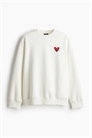 Толстовка из хлопковой смеси средней плотности с мягкой начесом внутри. Спущенные плечи и ребристая отделка по вырезу горловины, рукавам и подолу. Свободный крой с объемным, но не чрезмерно большим силуэтом.
