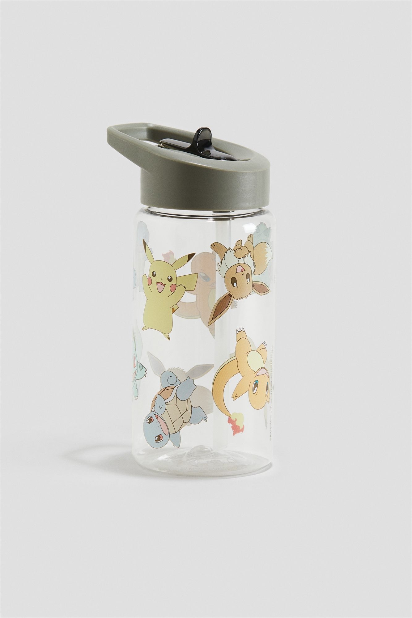 Пластиковая бутылка для воды с принтом и соломинкой. Крышка без капель и ручка в верхней части. Объем 450 мл.