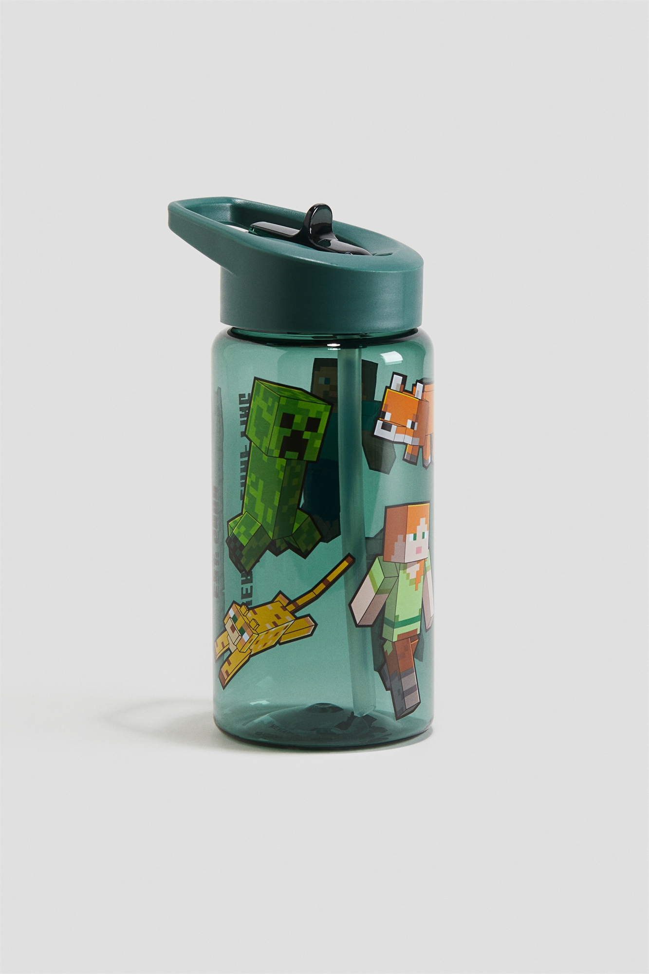 Пластиковая бутылка для воды с принтом и соломинкой. Крышка без капель и ручка в верхней части. Объем 450 мл.