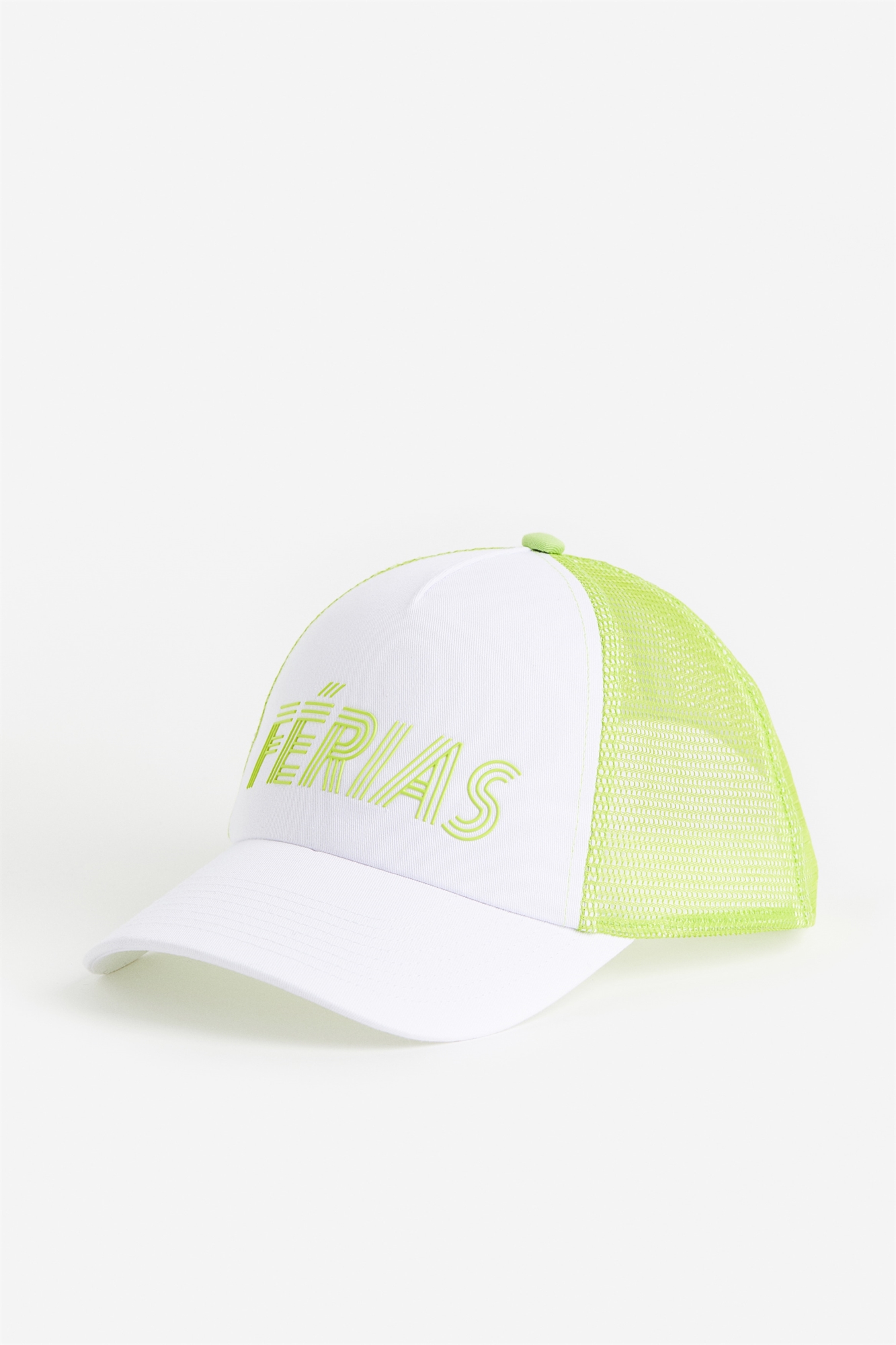 Кепка дальнобойщика с принтом, тканой передней частью и сетчатой задней частью. Регулируемая пластиковая застежка сзади.