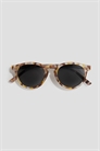 Солнцезащитные очки с пластиковой оправой, гнущимися боковыми дужками и тонированными линзами с УФ-защитой.