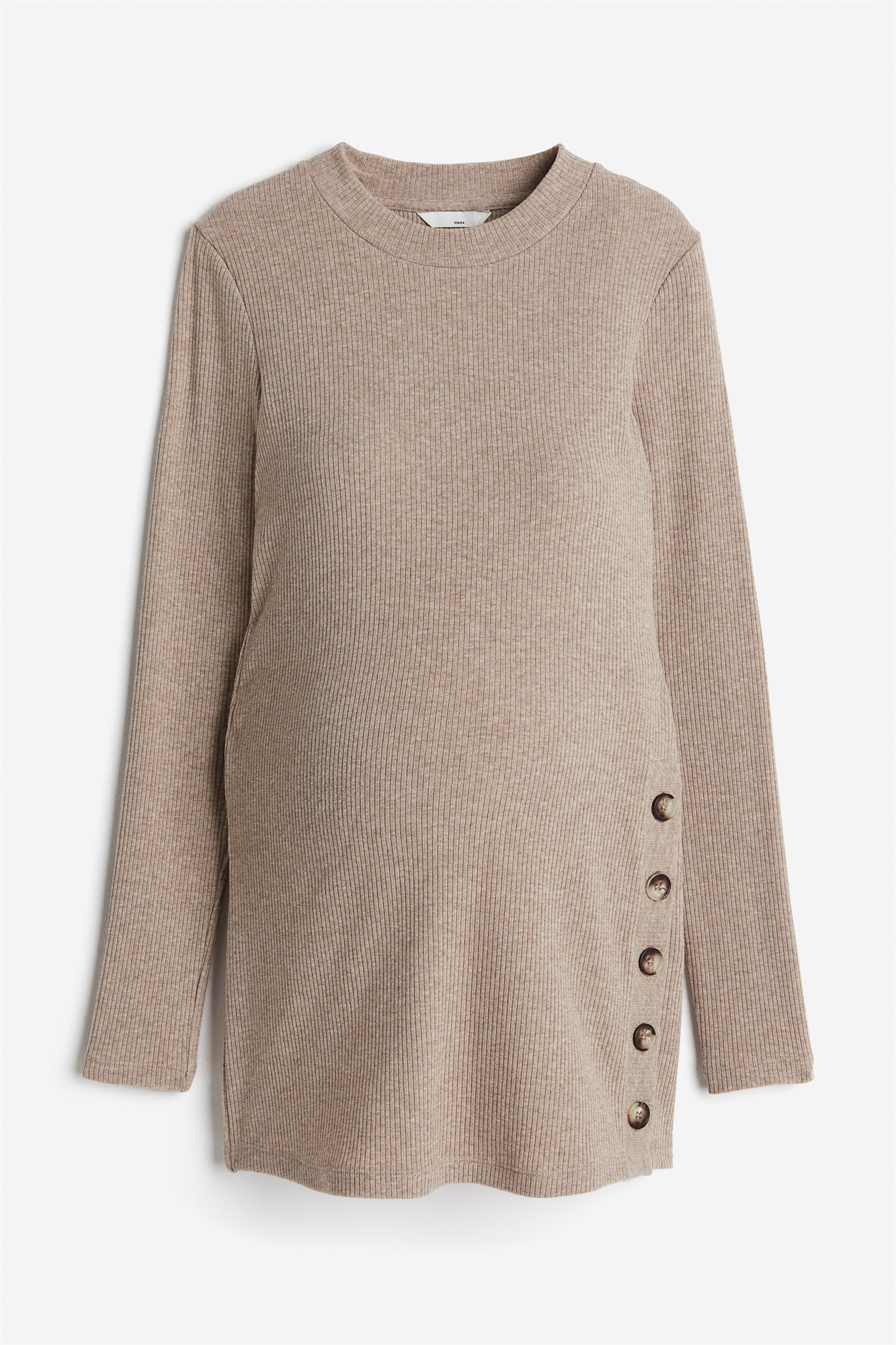 Топ из ребристого джерси из смеси хлопка с круглым вырезом, длинными рукавами и пуговицами на одной стороне подола для регулировки посадки.