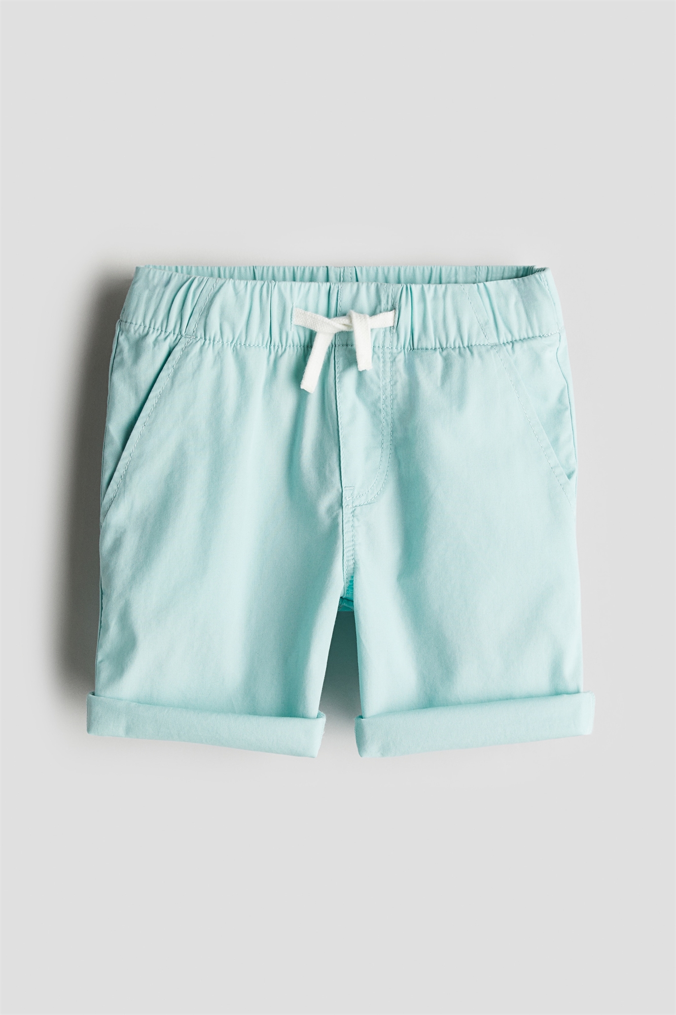 Шорты из мягкого хлопкового полотна с эластичным поясом на завязках, фальшивой ширинкой и диагональными боковыми карманами.
