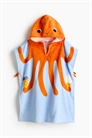 Полотенце накидка из мягкой хлопковой махры с велюром на внешней стороне. Капюшон с аппликацией и открытые бока с узкими завязками.