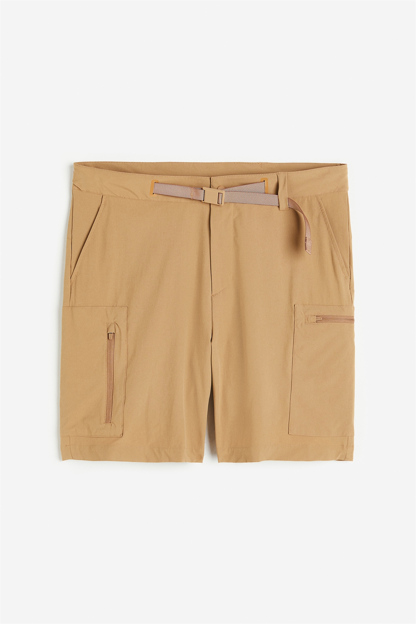 Велосипедные шорты из ветронепроницаемой, водоотталкивающей функциональной ткани, предназначенные для защиты от ветра и дождя. Регулярный крой с ширинкой на молнии и прижимной планкой, частично скрытый регулируемый пояс на талии с магнитной застежкой спереди. Диагональные передние карманы, задний карман, карманы на молнии и кобура для велосипедного замка сзади на талии. Светоотражающие детали на подоле.