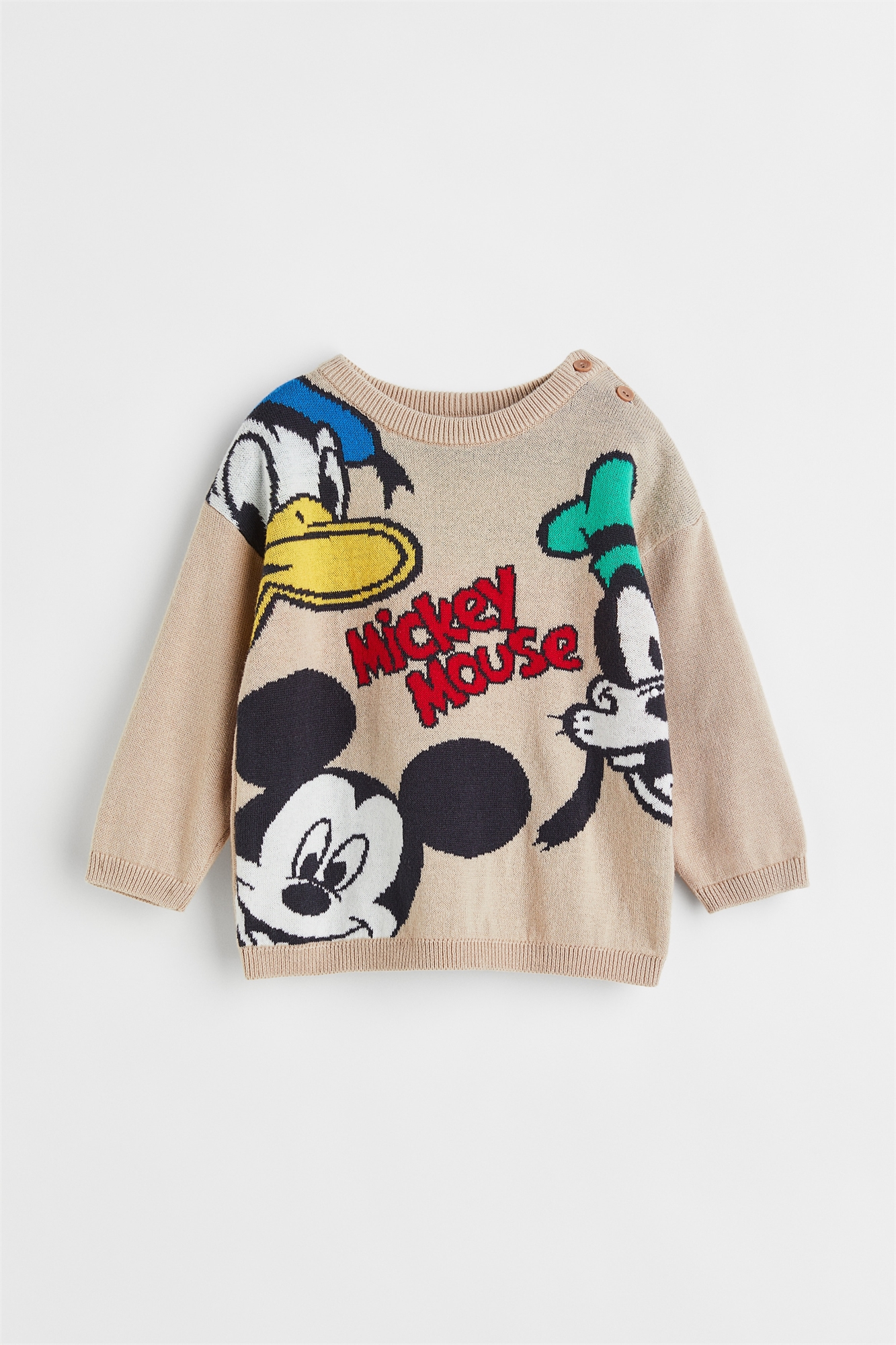 Жаккардовый джемпер из мягкого хлопка. Модель с пуговицами на одном плече, слегка опущенными плечами и ребристыми вырезом, рукавами и подолом.