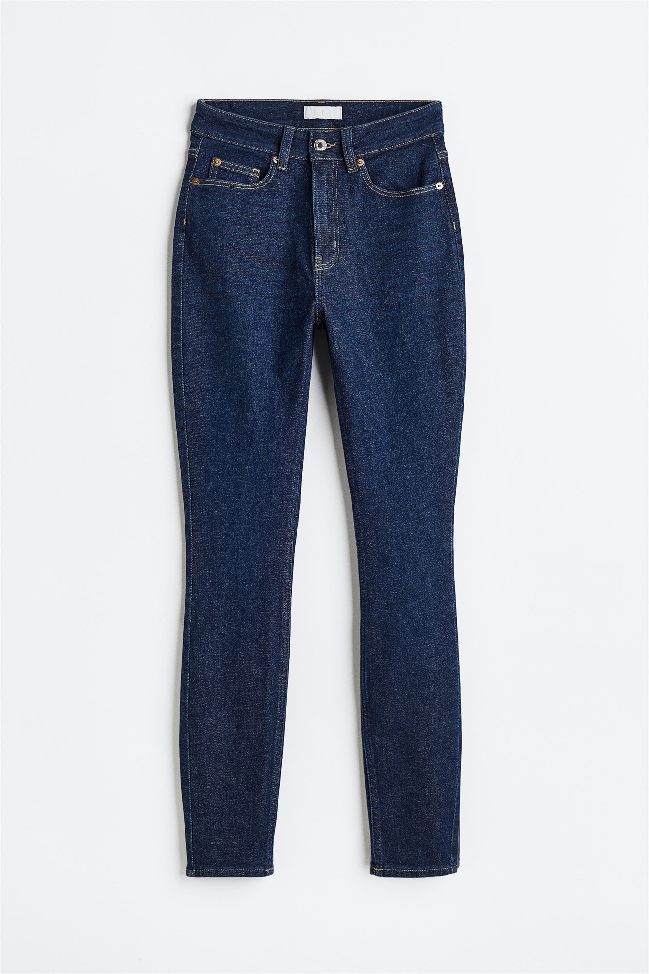Джинсы с 5 карманами из слегка тянущегося денима с высокой талией, ширинкой на молнии и пуговице и зауженными ногами.