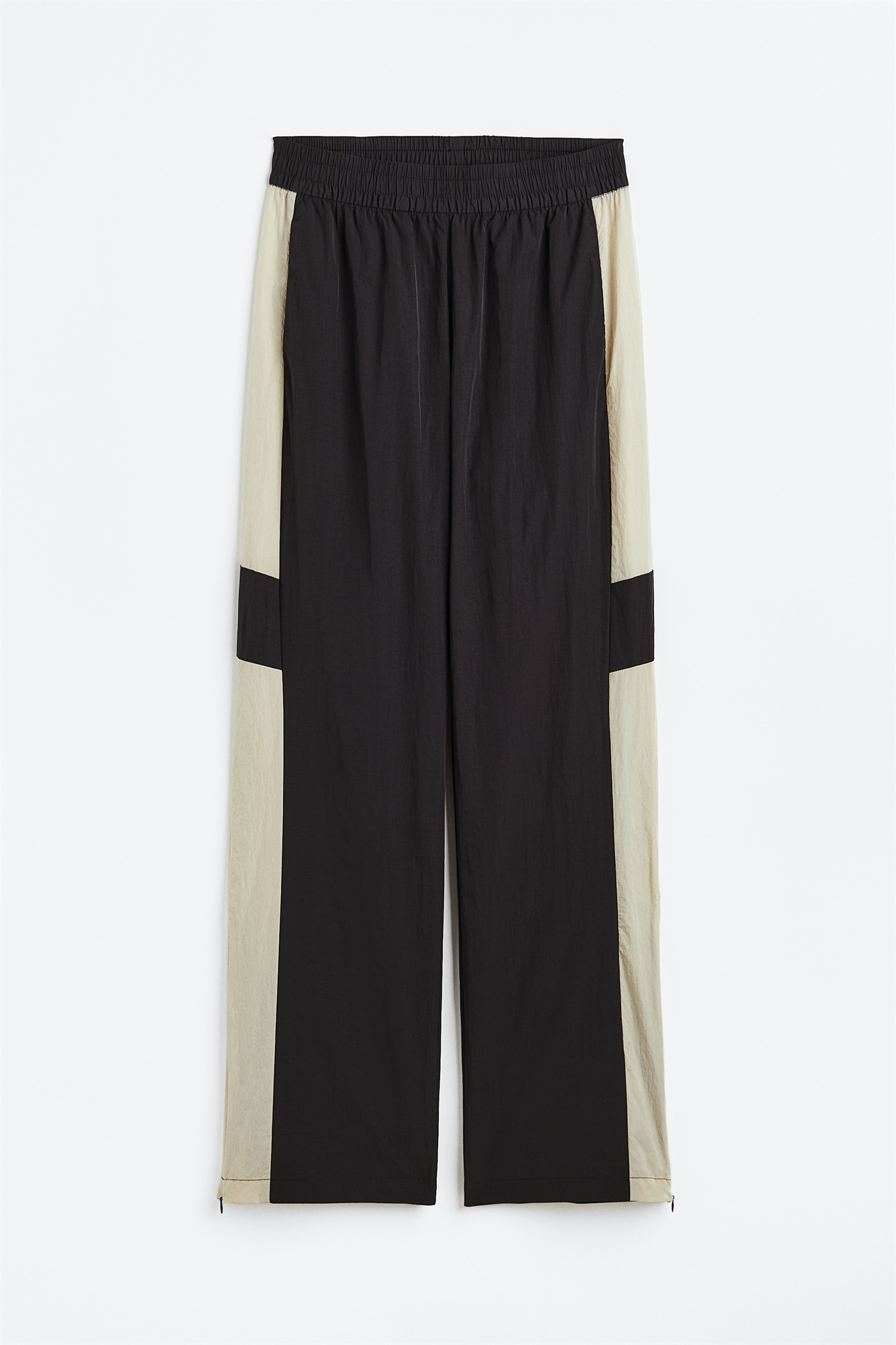 Легкие тренировочные брюки из ветрозащитного функционального материала, который защищает от ветра. Высокий эластичный пояс, незаметные боковые карманы с сетчатой подкладкой и широкие прямые штанины с высокой застежкой-молнией сбоку на концах штанин.