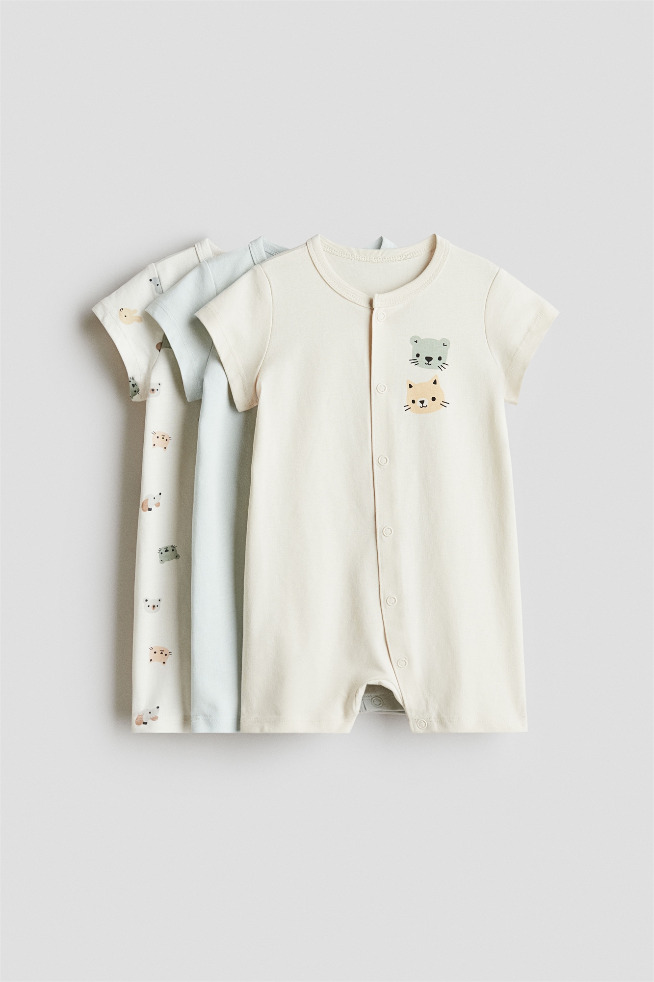 Спальные костюмы с короткими рукавами из мягкого хлопкового джерси. Круглый вырез, короткие ножки и застежка на кнопках для удобства переодевания.