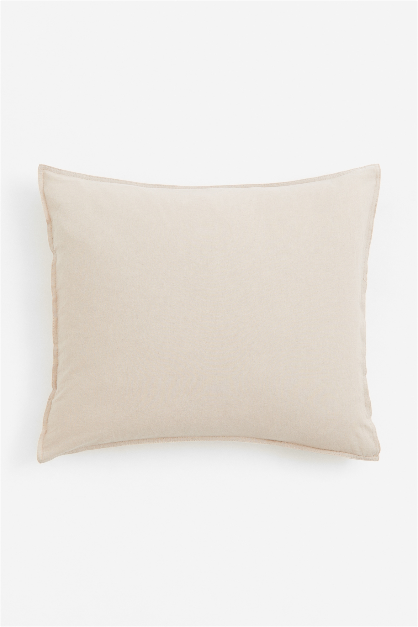 Наволочка из стираного льна и вискозы с количеством нитей 124, мягкая и комфортная для сна. Края с двойной строчкой и отверстие-конверт.